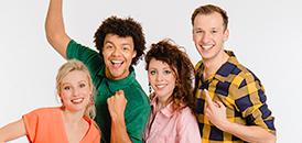 vrijdag | 2:32Henny Vrienten, Guido Belcanto, Miguel Wiels, Alain Vande Putte en Peter Gillis (het trio achter K3)