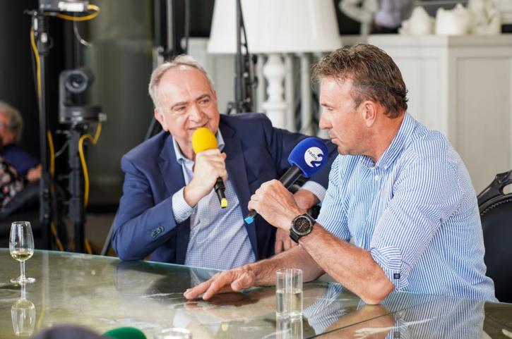 Dirk gaat spontaan op zijn vaste plek naast Luc zitten. "Dat voelt vertrouwd. Ik links, Luc rechts. En we communiceerden met elkaar via een soort ogenspel. Het was een ballet bijna," grinnikt hij als hij plaats heeft genomen op die vaste plaats. Waarop een lading hilarische anekdotes naar boven komen en de kroon zelfs een beetje onthuld wordt, als ze terugblikken op hun ontmoeting met prins Laurent. "In Villa Clémentine hingen aan de muur allerlei foto’s aan de muur van de familie: de infante van Spanje, de familie van Luxemburg, Caroline van Monaco hing er ook. En op het salontafeltje tussen twee zetels in zijn living stond een foto van Iris Vandenkerckhove – Wendy Van Wanten – met haar hondje," vertellen Luc en Dirk.